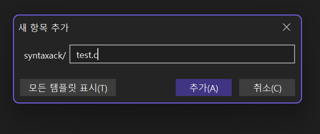 그다음 확장자를 c로 바꾼 뒤 추가를 눌러주세요.