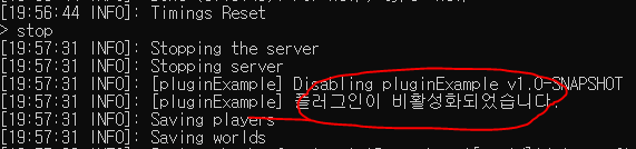 7.onDisable도 마찬가지로 플러그인이 비활성화될 때 작동하는 메서드입니다.