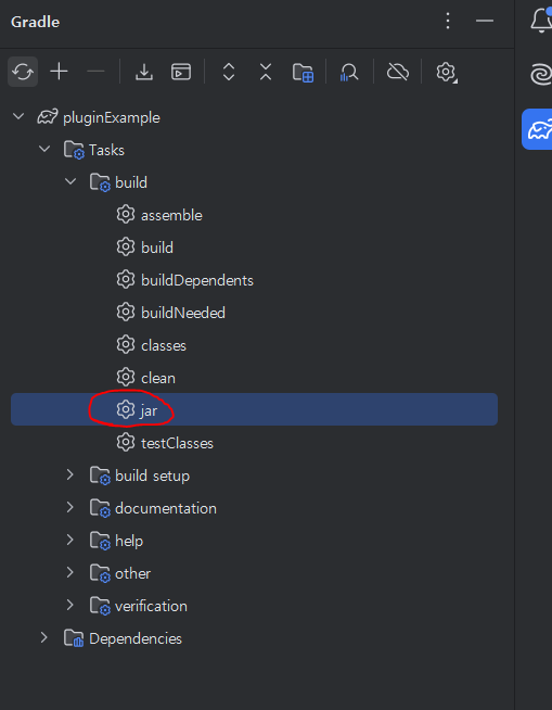 그 다음 Tasks▶build ▶ jar을 더블클릭합니다.