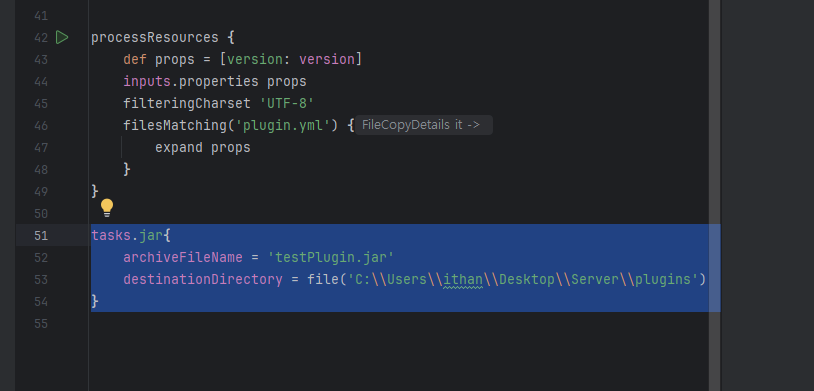 destinationDirectory = file('C:\\Users\\ithan\\Desktop\\Server\\plugins')