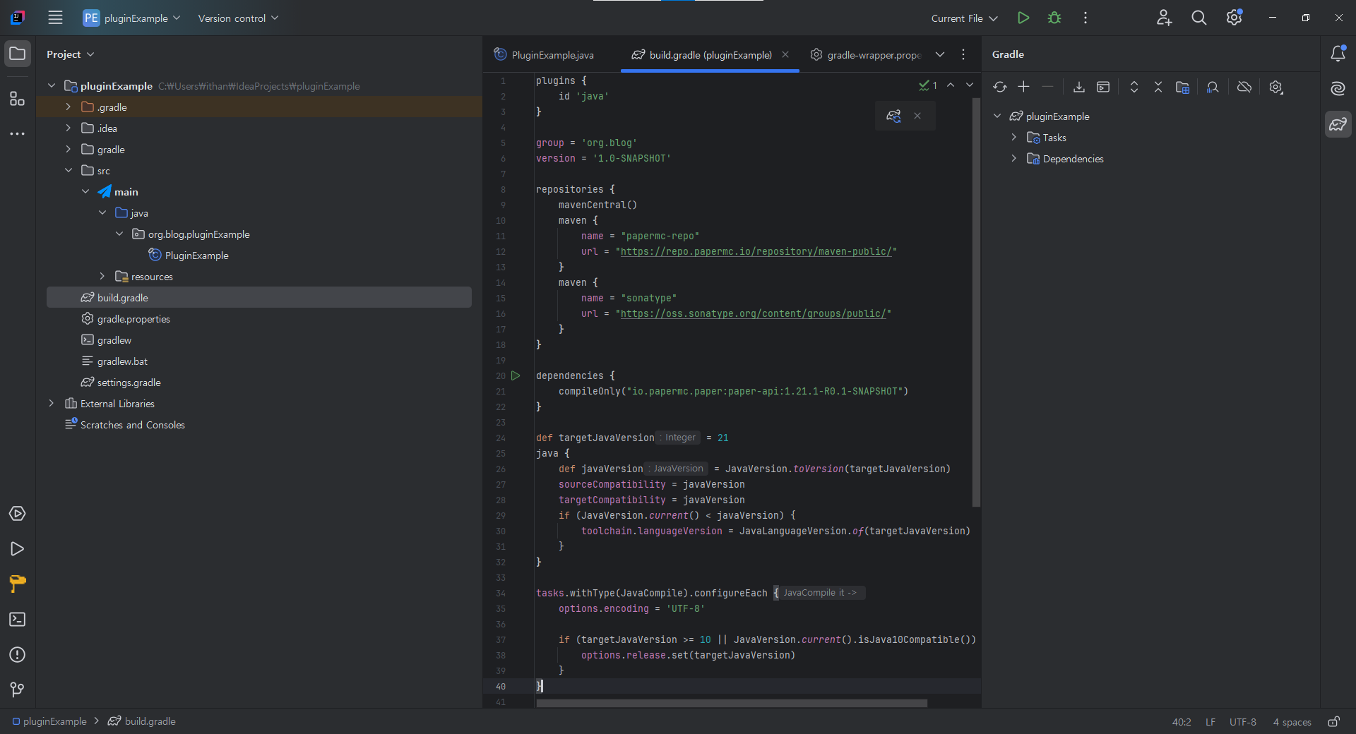 그럼 우리는 플러그인 jar 파일을 어디에 생성할지 지정해주어야 하기 때문에 아래 코드를 추가 해줍니다.